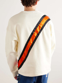 BODE takes design cues from '70s collegiate styles for this 'Grad Colors' sweatshirt. Detailed with satin stripes like a sash, it's cut for a relaxed fit from fleece-back cotton-jersey and embroidered as if for a future graduate. Size & Fit - Fits true to size. Take your normal size - Designed for a relaxed fit - Mid-weight, slightly stretchy fabric - Model is shown wearing a M - Model measures: chest 38"/ 96cm, height 6'1"/ 185cm Details & Care - Cream fleece-back cotton-jersey, black and bright-orange satin - 100% cotton - Dry clean