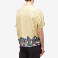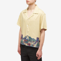 Inspired by deadstock yardage from the 1950's-1960's found by BODE, this Ski Lift vacation shirt echoes the brand’s story-telling style. Decorated using the same printed ski-mountain scene across the hem, this take on the basic-button down even reproduces the OG fabric, that’s then further embellished with decorative beadwork. - 100% Rayon - Boxy Fit - Camp Collar - Button Closure - Dry Clean Only