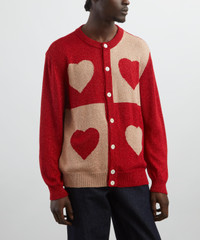 DETAILS Lurex cardigan Relaxed fit Round neckline Front button fastening Ribbed collar, cuffs, and hem Alternating heart design SIZE & FIT Model is 186cm/6'1"; Chest: 92cm; Waist: 71cm and wears a size M COMPOSITION & CARE 80% Viscose; 20% Metal fibre Dry clean