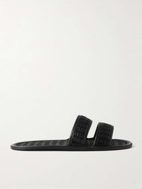 Leather-Trimmed Woven Raffia Slides