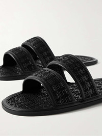 Every BODE piece tells a story - these slides are inspired by the comfort and ease of vintage house slippers. They're made from woven raffia, trimmed with leather and set on gripped rubber soles. Details & Care - Black raffia and leather (Calf)