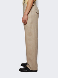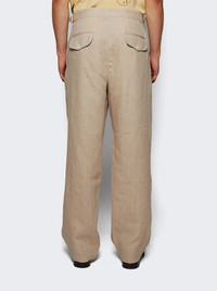 Details - Regular fit - Straight leg - Zip and button closure - Side-buckle waist adjusters for ideal fit - Two welt pockets - Care according to label - Material: 100% Linen - Model is 6'1"/185cm and is wearing a size US32 Brand Style: MRS25BT072 Designer/Brand: BODE
