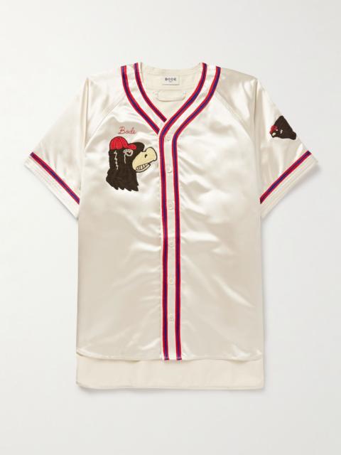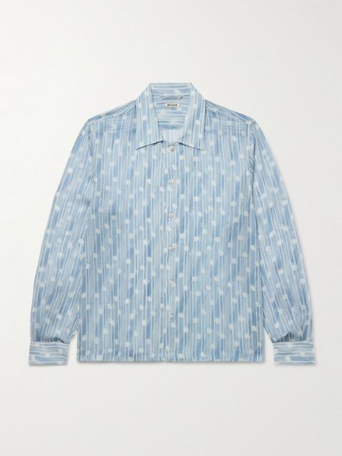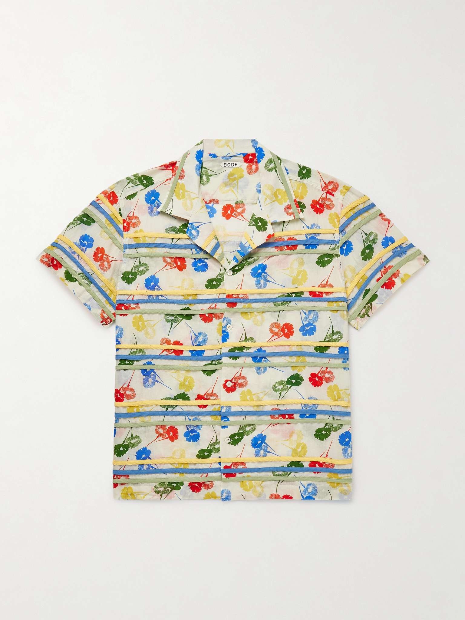Flower Stamp Camp-Collar Appliquéd Printed Cotton-Gauze Shirt
