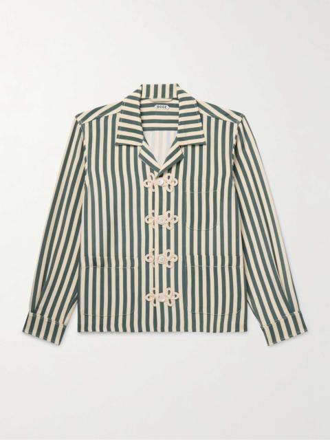 BODE's 'Flower Stamp' shirt is cut from lightweight cotton-gauze, a reproduction of a printed fabric swatch from the '20s or '30s. It has a relaxed camp collar and is appliqued with playful stripes to match the colourful pattern. Size & Fit - Fits true to size. Take your normal size - Designed for a boxy fit - Lightweight, semi-sheer, non-stretchy fabric - Model is shown wearing a M - Model measures: chest 38"/ 96cm, height 6'2"/ 188cm Details & Care - Multicoloured cotton-gauze - Button fastenings - 100% cotton - Dry clean - Mother-of-pearl: USA