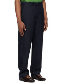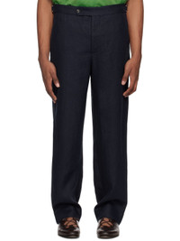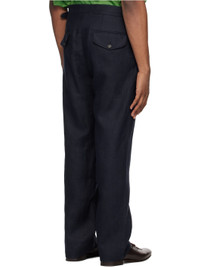 Straight-leg linen hopsack trousers. · Cinch tabs at waistband · Four-pocket styling · Zip-fly This item is part of a limited run of 101. Supplier color: Navy 100% linen. Made in Romania 242169M191000