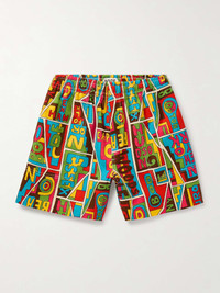 BODE's shorts are printed with an eye-catching mosaic motif - inspired by vintage upholstery - featuring various names from cities and towns in New England. They're made from textured-cotton and have a comfortable elasticated waistband. Complete the set with the matching shirt jacket. Size & Fit - Fits true to size. Take your normal size - Relaxed-straight leg, low-crotch style - Internal drawstring at the waist - Mid-weight, non-stretchy fabric - Model is shown wearing a M - Model measures: waist size 32, height 6'1"/ 185cm Details & Care - Multicoloured textured-cotton - 100% cotton - Dry clean