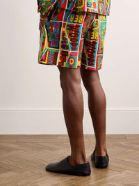 New England Mosaic Straight-Leg Printed Textured-Cotton Shorts