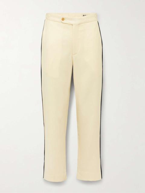 Vintage styles from the '50s inspire BODE's 'Player' trousers. They're cut from felted wool-blend twill and embellished with beaded stripes along the sides. Buckled waist tabs allow you to adjust the fit. Size & Fit - Model wears a size larger to achieve a looser fit - Regular-straight leg, mid-rise style - Mid-weight, non-stretchy fabric - Model is shown wearing a 32 - Model measures: chest 38"/ 96cm, height 6'1"/ 185cm Details & Care - Cream felted wool-blend twill - Button, hook and zip fastening - 98% wool, 2% polyurethane - Dry clean