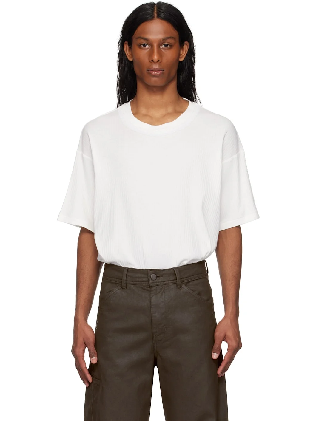 Cotton ribbed jersey T-shirt. · Beaded detailing at crewneck · Dropped shoulders This item is part of a limited run of 100. Part of the Salt Marsh collection. Supplier color: Cream 100% cotton. Made in United States 251169M213013