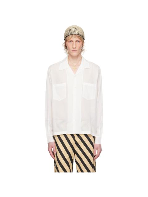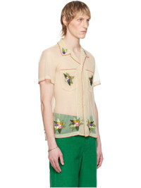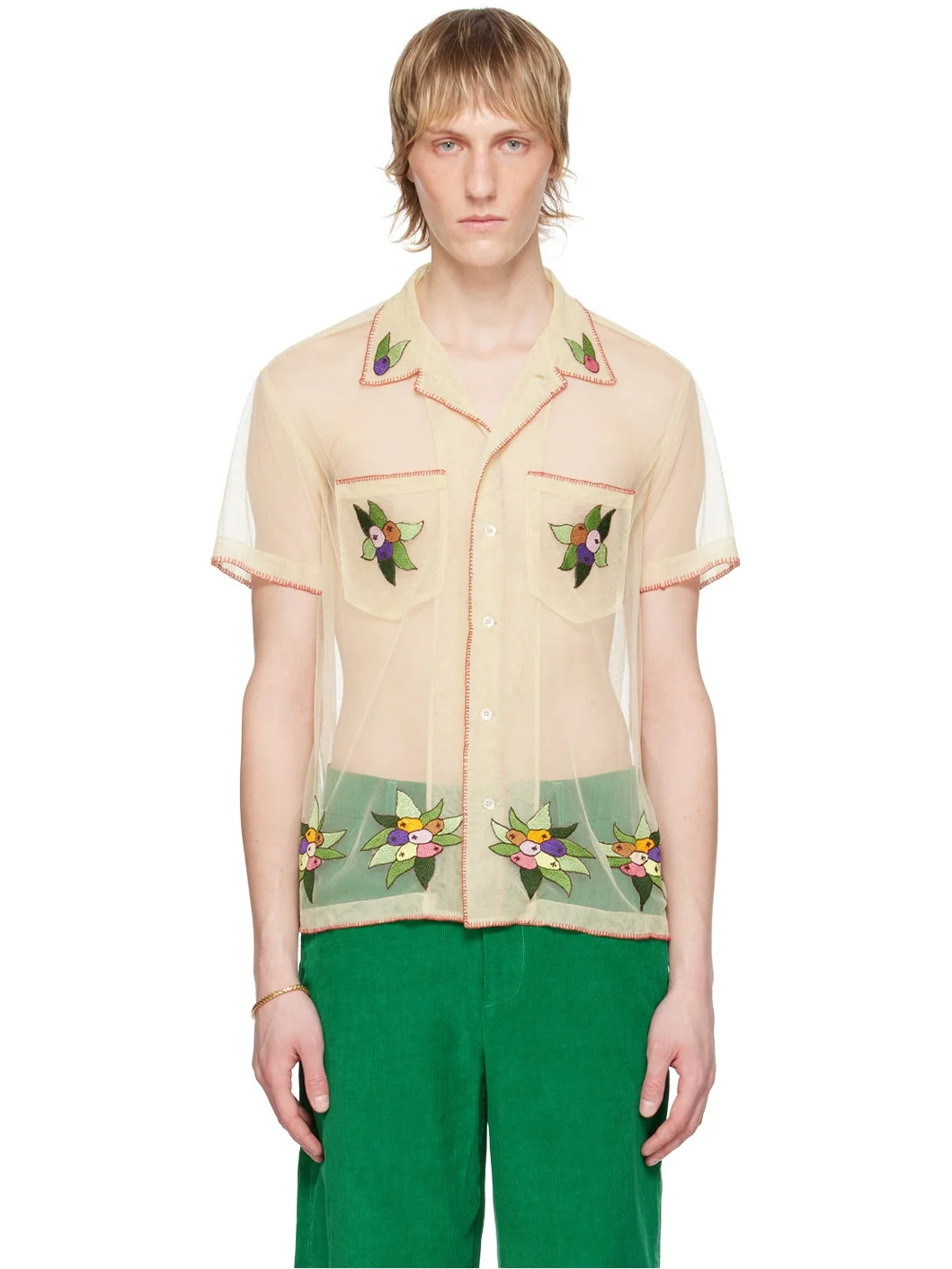 Sheer polyester mesh shirt. Embroidered floral graphics and blanket stitching throughout. · Spread collar · Button closure · Patch pockets This item is part of a limited run of 73. Supplier color: White/Multi 100% polyester. Made in India 242169M192012
