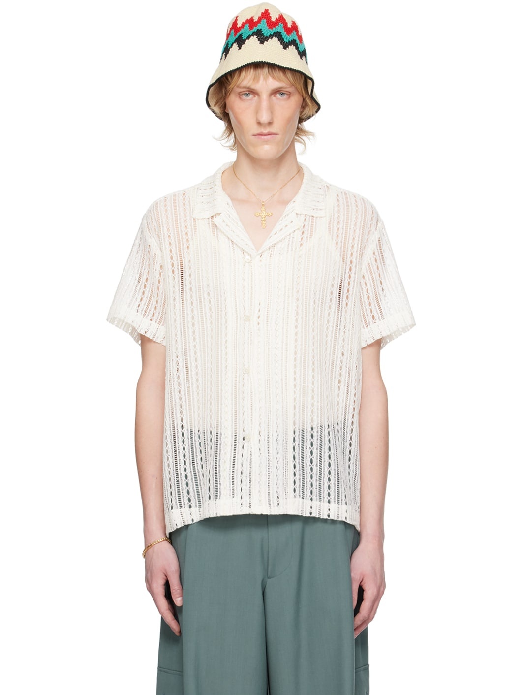 Semi-sheer cotton lace shirt. · Open spread collar · Button closure This item is part of a limited run of 246. Supplier color: Natural