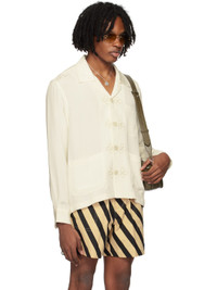 Silk crepe shirt. · Open spread collar · Embroidered detailing at button closure · Patch pockets · Single-button barrel cuffs This item is part of a limited run of 82. Supplier color: Cream 100% silk. Made in India 242169M192019