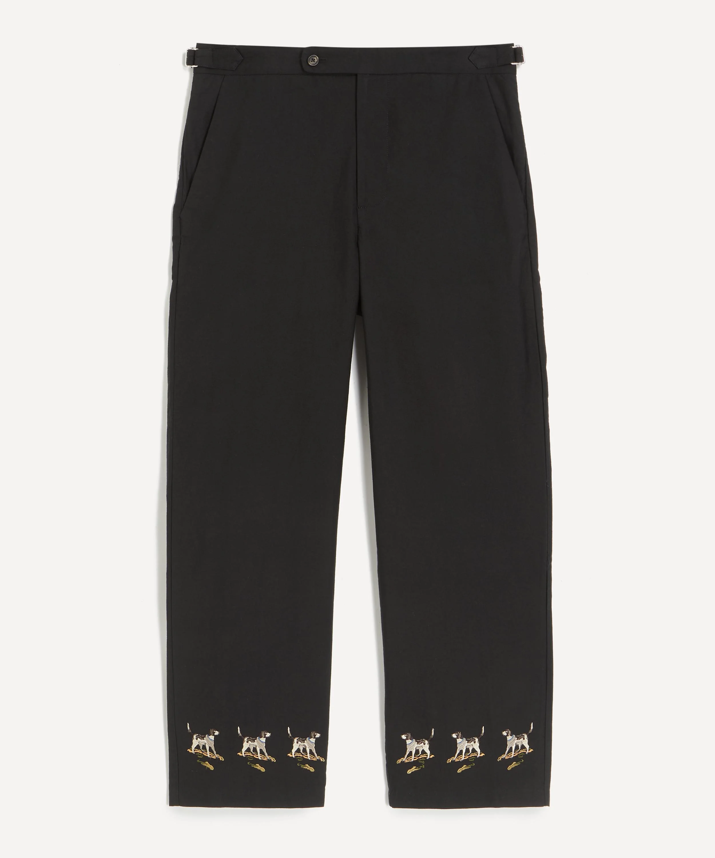 DETAILS Cotton trousers Mid-rise Straight-leg Side-buckle waist adjusters Embroidered silk-stitched dog motifs at the hem SIZE & FIT Model is 188cm/6'2"; Chest: 92cm; Waist: 80cm and wears a size M COMPOSITION & CARE 100% Cotton Dry clean
