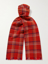 Gable Checked Fringed Wool Scarf Red