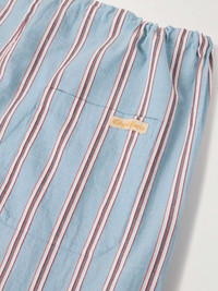 BODE's collections are like time capsules from the past - these striped, pyjama-style trousers are inspired by a traditional shirting fabric from the 1930s. They're made from breathable cotton-voile and have a comfortable elasticated drawstring waistband. Size & Fit - Fits true to size, however those who are between sizes should take the smaller size - Relaxed-straight leg, low-crotch style - Drawstring at the waist - Lightweight, non-stretchy fabric - Model is shown wearing a S - Model measures: waist size 30, height 6'2"/ 188cm Details & Care - Tonal-blue, white and red cotton-voile - Button fastenings - 100% cotton - Dry clean
