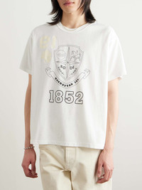 BODE's T-shirt is inspired by a style owned by a high school graduate in the '90s. Designed to be reversed, it's cut for a slightly cropped fit from lightweight cotton-jersey and printed on both sides with crests. Team yours with vintage jeans and loafers. Size & Fit - Fits true to size. Take your normal size - Designed for a loose fit - Cropped in length - Lightweight, slightly stretchy fabric - Model is shown wearing a M - Model measures: chest 38"/ 96cm, height 6'2"/ 188cm Details & Care - Multicoloured cotton-jersey - 100% cotton - Machine wash