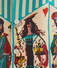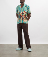 DETAILS Silk shirt Blue-green striped design with play-card motif Fits true to size Short sleeves Camp collar Button placket SIZE & FIT Model is 186cm/6'1"; Chest: 92cm; Waist: 71cm and wears a size M COMPOSITION & CARE 100% Silk Dry clean