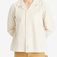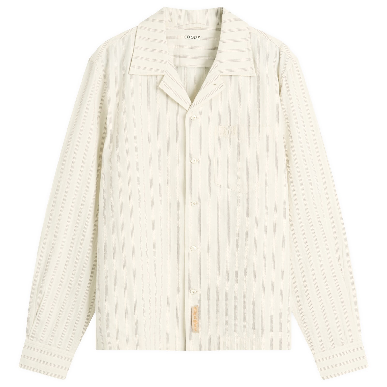 In the 1930s, tailor shops and department stores would have books of shirting samples for customers to browse and that’s where Emily Adams Bode Aujla found her inspiration for the Lavender Sail shirt. Reproducing the sample with fine lavender stripes on an ecru background, it’s the perfect shirt for spring and summer. - 100% Cotton - Spread Collar - Button Down Closure - Single Chest Pocket - Antique ‘City of Paris’ Label - Dry Clean Only - Embroidered BODE Monogram - Made in India