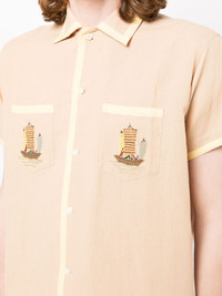 boat-embroidered shirt BODE creates one-of-a-kind pieces with maritime influences from the past. This shirt captures this aesthetic in the playful boat embroidery on the chest pockets, inspired by 1930s textiles. Highlights - Camel yellow - Cotton-linen blend - Embroidered motif - Classic collar - Two chest patch pockets - Front button fastening - Short sleeves Imported Composition Body: Linen/Flax 55%, Cotton 45% SIZE & FIT Model measurements Height 6 ft 2 in(1.87 m) Bust/Chest 36.22 in(92 cm) Hips 37.79 in(96 cm) Waist 28.34 in(72 cm) Washing instructions Dry Clean Only