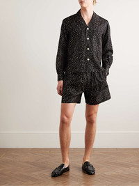 Camp-Collar Glittered Polka-Dot Faille Shirt