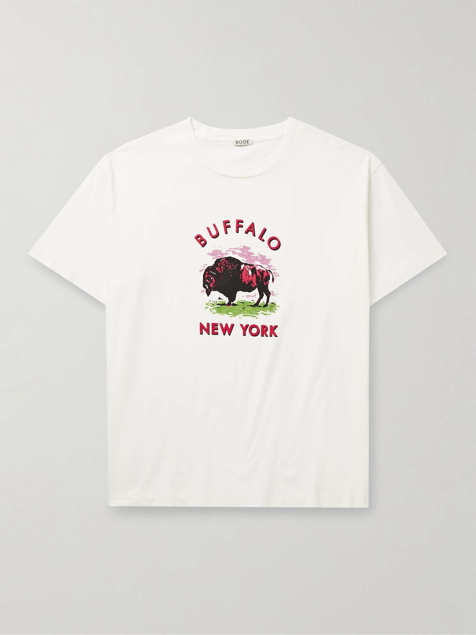BODE's T-shirt is printed with a Buffalo, New York graphic in a 1970s style. It's cut for a slim fit from cotton-jersey and pairs especially well with the label's patchwork pieces. Size & Fit - Fits true to size. Take your normal size - Designed for a slim fit - Lightweight, non-stretchy fabric - Model wears a M - Model measures: chest 38"/ 96cm, height 6'2"/ 188cm Details & Care - Multicoloured cotton-jersey - 100% cotton - Machine wash