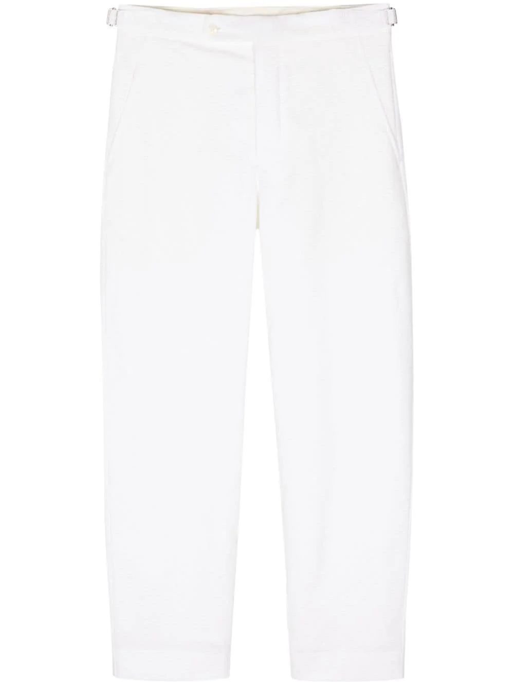 straight-leg cotton trousers Highlights - White - Cotton - Mid-rise - Straight leg - Off-centre front fastening - Adjustable waist strap - Two side slash pockets - Two rear flap pockets Imported Composition Outer: Cotton 65%, Polyamide 31%, Elastane 4% Lining: Viscose 100%