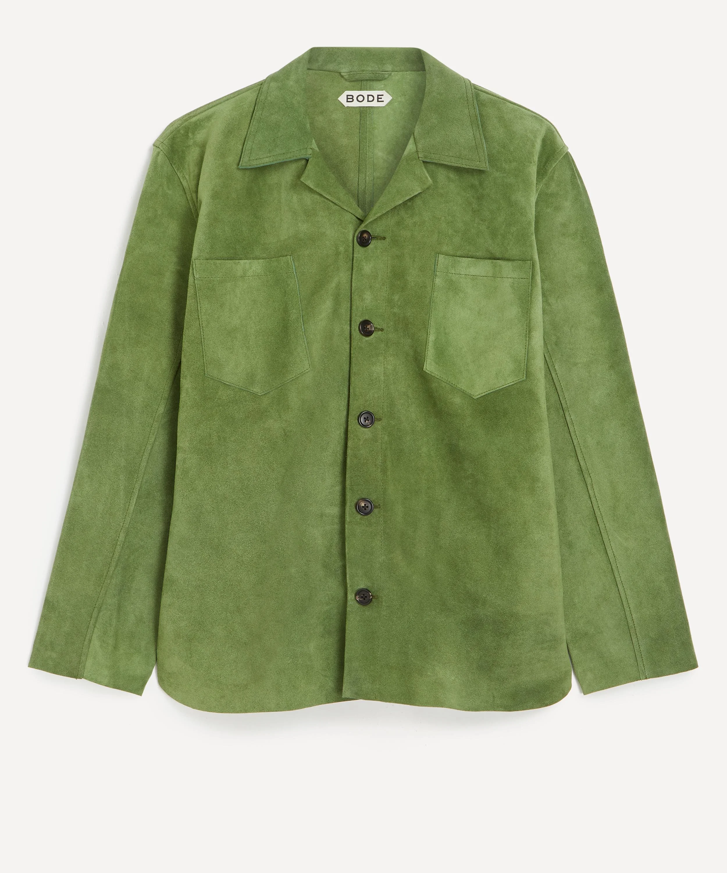 DETAILS Suede overshirt Relaxed fit Notched collar Front button fastening Two front patch pockets SIZE & FIT Model is 186cm/6'1"; Chest: 92cm; Waist: 71cm and wears a size M COMPOSITION & CARE 100% Lamb leather Specialist leather dry clean