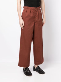 cropped wide-leg trousers Highlights - Cognac brown - Cotton - Pleat detailing - Wide leg - Cropped - Belted waist tabs - Front press-stud fastening - Two side inset pockets - Two rear patch pockets Imported Composition Cotton 100% SIZE & FIT Model measurements Height 6 ft 2 in(1.87 m) Bust/Chest 36.22 in(92 cm) Hips 37.79 in(96 cm) Waist 28.34 in(72 cm) Washing instructions Hand Wash