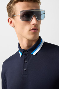 Performance pique with moisture-regulating properties makes the Arik polo shirt a comfortable piece for various activities. The design is characterized by the striped polo shirt collar and matching ribbed cuffs, complemented by the short press stud placket. The subtle logo print adds a label-typical twist. Style number 262-5203-9623-464