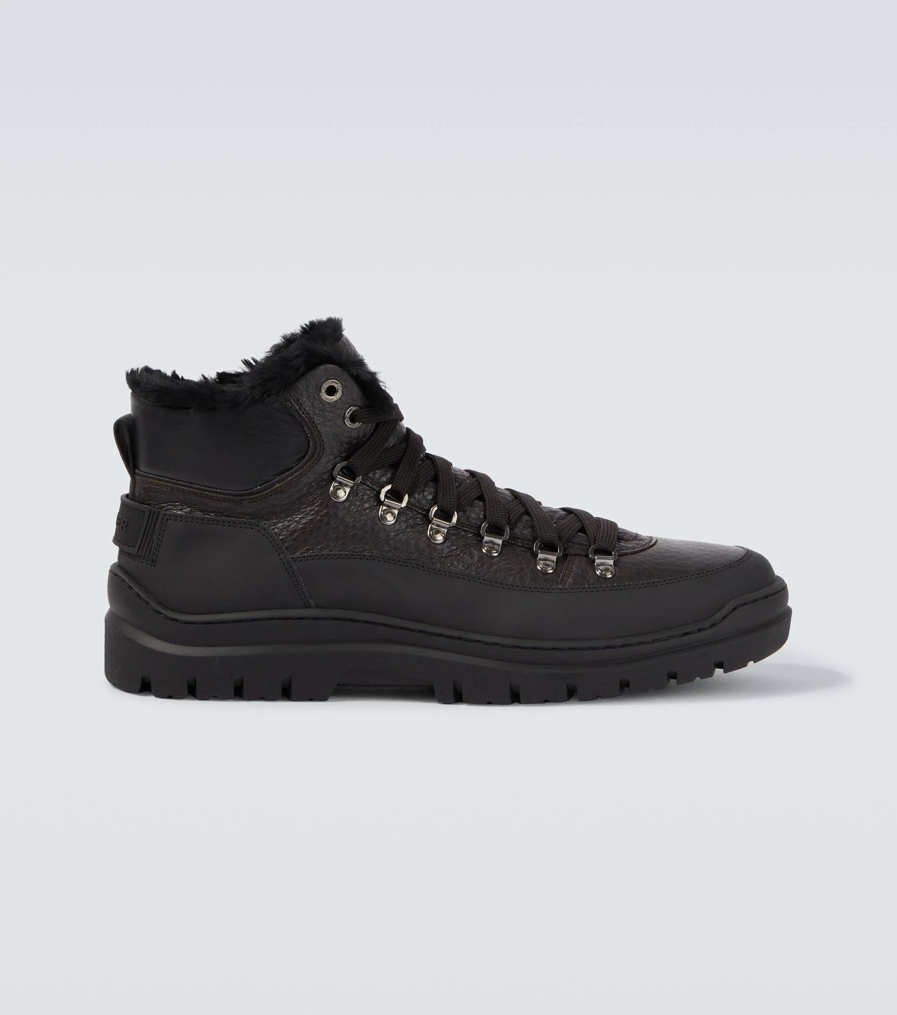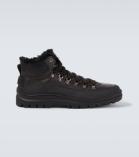 Bogner has revolutionized skiwear with time-tested designs that seamlessly transition from the slopes to the chalet. The Bansko hiking boots are made from grained leather and fabric with plush shearling trims. Product Details - Upper: leather, rubber - Lining: shearling - Sole: shearling insole, rubber sole - Toe shape: round toe - Made in Italy - Includes: shoe box, dust bag - Designer color name: Dark Brown - Item color: brown - Hardware color: silver - Closure: lace-up - Item number: P01092668