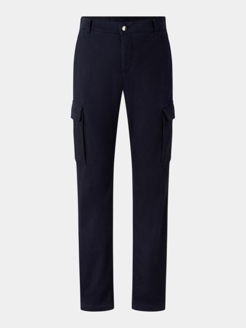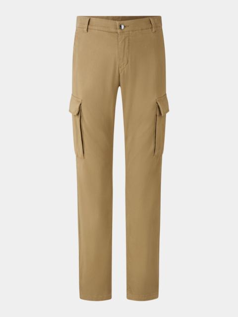 The Bruno cargo pants feature a classic design with flap pockets on the legs. Complemented by the waistband with belt loops and the button and concealed zip duo. Metallized signature details and internal tape add subtle accents. Style number 254-1808-9774-805 Details - Tapered fit cargo pants - With tapered leg - Trouser leg cuffs with classic turn-ups - Closed with BOGNER button and zipper - Attached waistband with loops for belts up to 4.5 cm, with logo tape on the inside - Two side slash pockets One concealed coin pocket with logo rivet Two cargo pockets with concealed press studs One back pocket with concealed B-zipper - With fade-out finish - Foot width: 36 cm Material & care Material Shell 1 1. Layer: 65% Cotton, 33% Lyocell, 2% Elastane Material description Performance cotton in a stretchy cotton/lyocell mix Care mild fine wash do not bleach do not tumble dry handwarm ironing gentle dry-cleaning no wet-cleaning Wash with mild detergent, wash without fabric softener