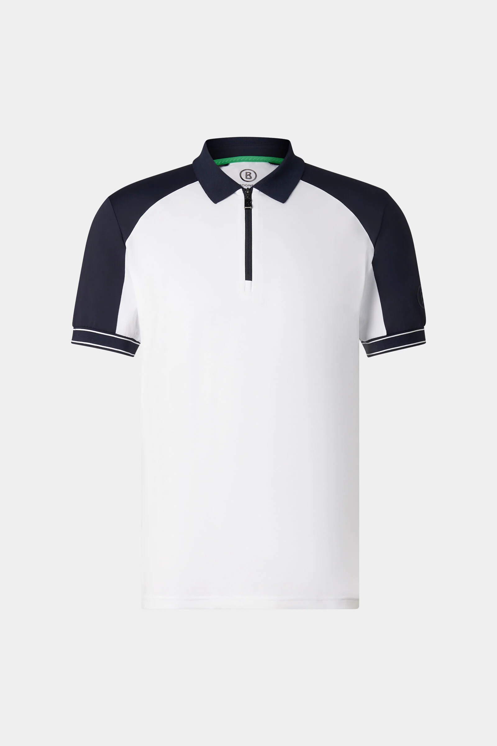 Performance jersey with pique inserts makes the Fabius polo shirt a modern item for functional looks, complemented by contrasting sections. The polo shirt collar and short zip provide a classic twist, while ribbed cuffs offer comfort. Subtle signature details add an iconic finish. Style number 262-5205-6844-753