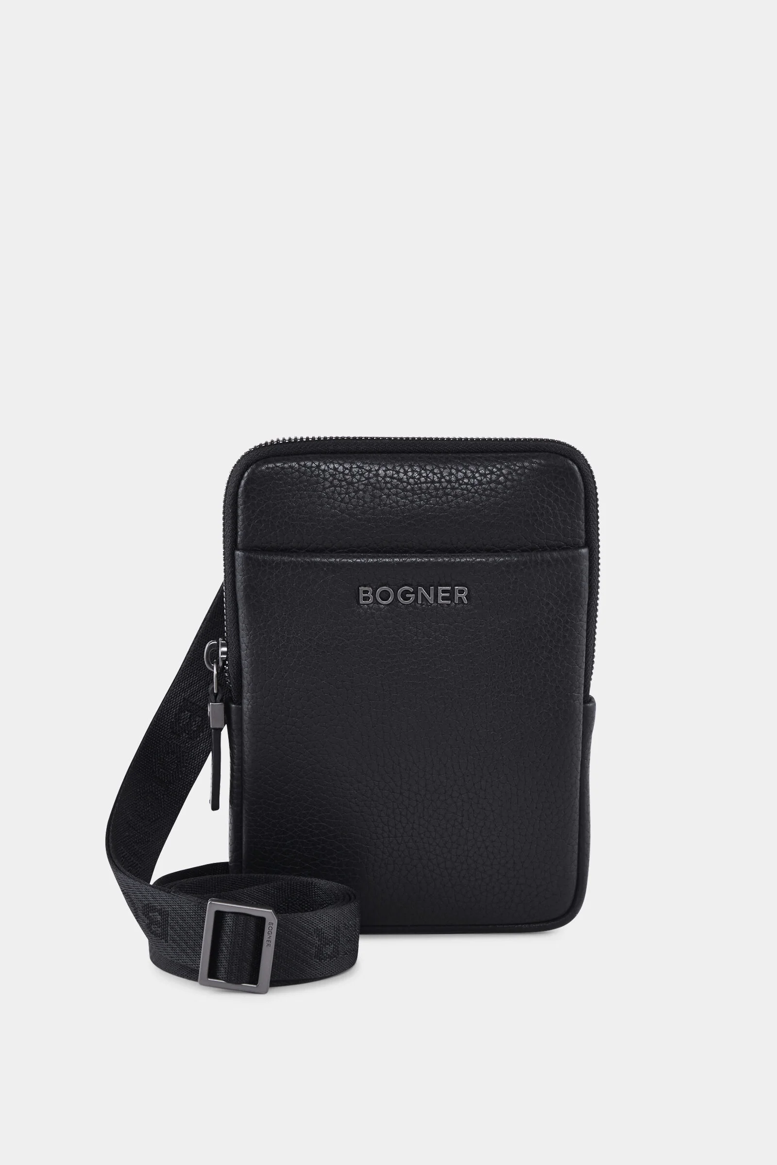 The Jasper Jacob shoulder bag in grained leather and finished off with logo lettering on the front is sure to impress as a stylish companion. An adjustable shoulder strap in signature design adds an urban accent, while the zip-up main compartment completes the design. Style number 999-9L21-Z002-900 Details - Shoulder bag with rectangular silhouette - Main compartment fastens with zipper - One adjustable shoulder strap in BOGNER design - One outer slip compartment - Metallic logo lettering on the front - Smooth lining in lettering design - Two interior slot pockets - Width: 13 cm - Height: 18 cm - Depth: 1,5 cm - Dust bag included Material & care Material Shell: 100% Leather Lining: 100% Polyester Material description Finely grained leather with flowing technical lining