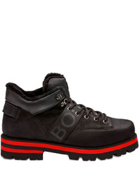 logo lace-up boots Highlights - Black - Logo detail - Lace-up fastening - Striped platform sole - Round toe Made in Italy Composition Outer: Leather 100% Lining: Lamb Fur 100% Sole: Rubber 100%