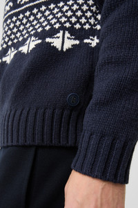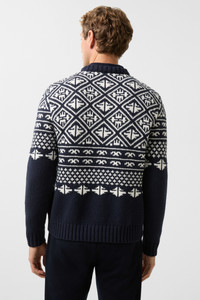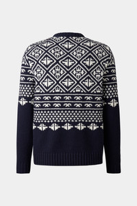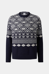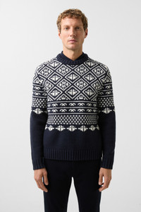 Made from two-tone jacquard in Norwegian style, the Lucian sweater is an impressively casual companion. The technical wool blend ensures upgraded comfort, while the ribbed sleeve cuffs and accentuated ribbed hem complete the design. Style number 244-8130-9226-464 Details - Sweater in regular fit - In Norwegian design - Crew neck - Long sleeves - Attached ribbed cuffs - Rubber patch applied above the hem - Hem in ribbed knit finish Material & care Material Shell: 53% Wool, 47% Polyamide Material description Knitted in technical wool blend and two-tone jacquard Care very mild fine wash do not bleach do not tumble dry handwarm ironing gentle dry-cleaning no wet-cleaning Use wool detergent. Do not use fabric softener