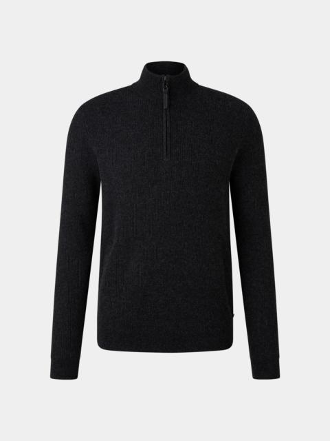 Fine ribbed knit gives the Derek troyer a modern look, stylishly complemented by the B-zipper with leather strap on the stand-up collar and the label's signature B-signe at hem height. The blend of virgin wool and cashmere provides a luxurious twist and pure comfort. Style number 254-8875-2761-805 Details - Knitted troyer in a regular fit - Stand-up collar - Long sleeves - Attached cuffs - B-zip fastener with leather strap on the collar - Appliqued B-signe at hem height - Clean hem finish Material & care Material Shell 1 1. Layer: 70% Virgin wool, 30% Cashmere Material description Luxurious finish in virgin wool with cashmere Material hints Contains non-textile parts of animal origin Care hand-wash do not bleach do not tumble dry handwarm ironing do not dry-clean no wet-cleaning Use wool detergent. Do not use fabric softener