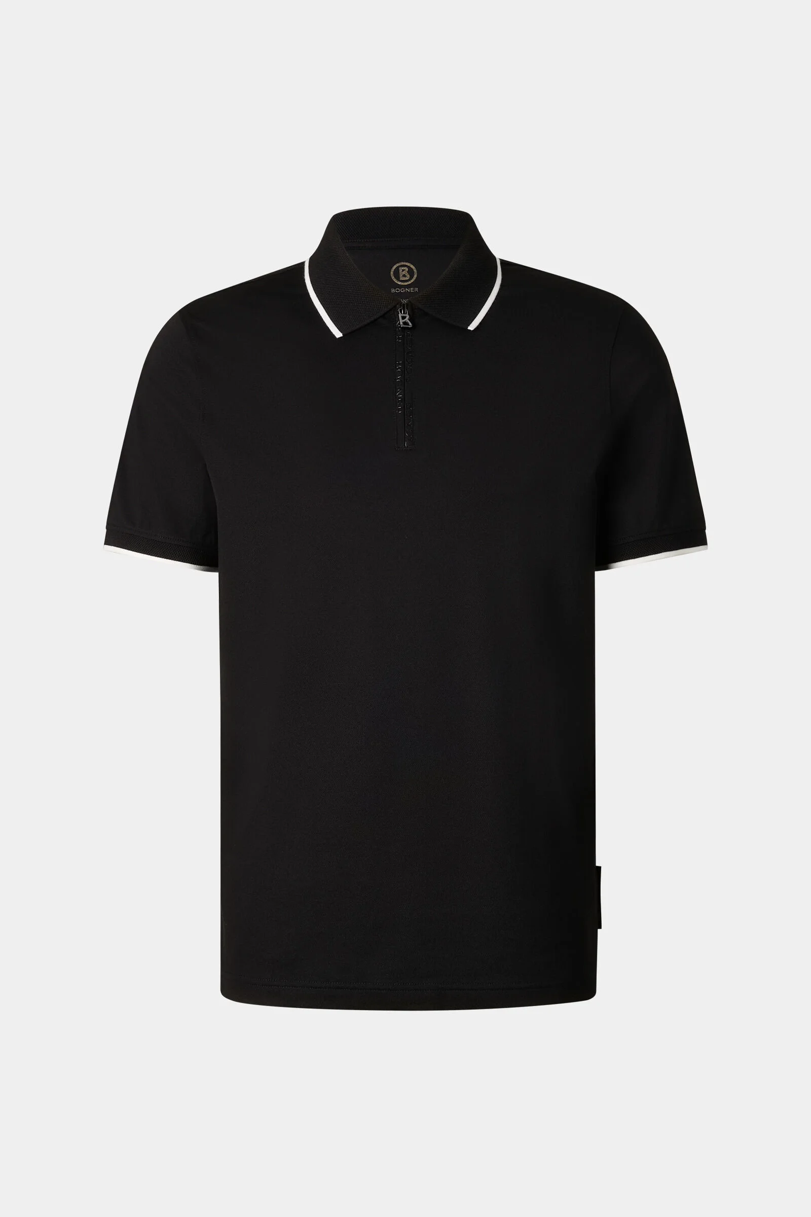 Performance cotton in pique fabric gives the Timo polo shirt a stylish look. The modern twist is provided by the knitted polo shirt collar and matching cuffs, complemented by the short zip with rubberized logo lettering. A subtle label flag accentuates the piece. Style number 262-5860-2727-026