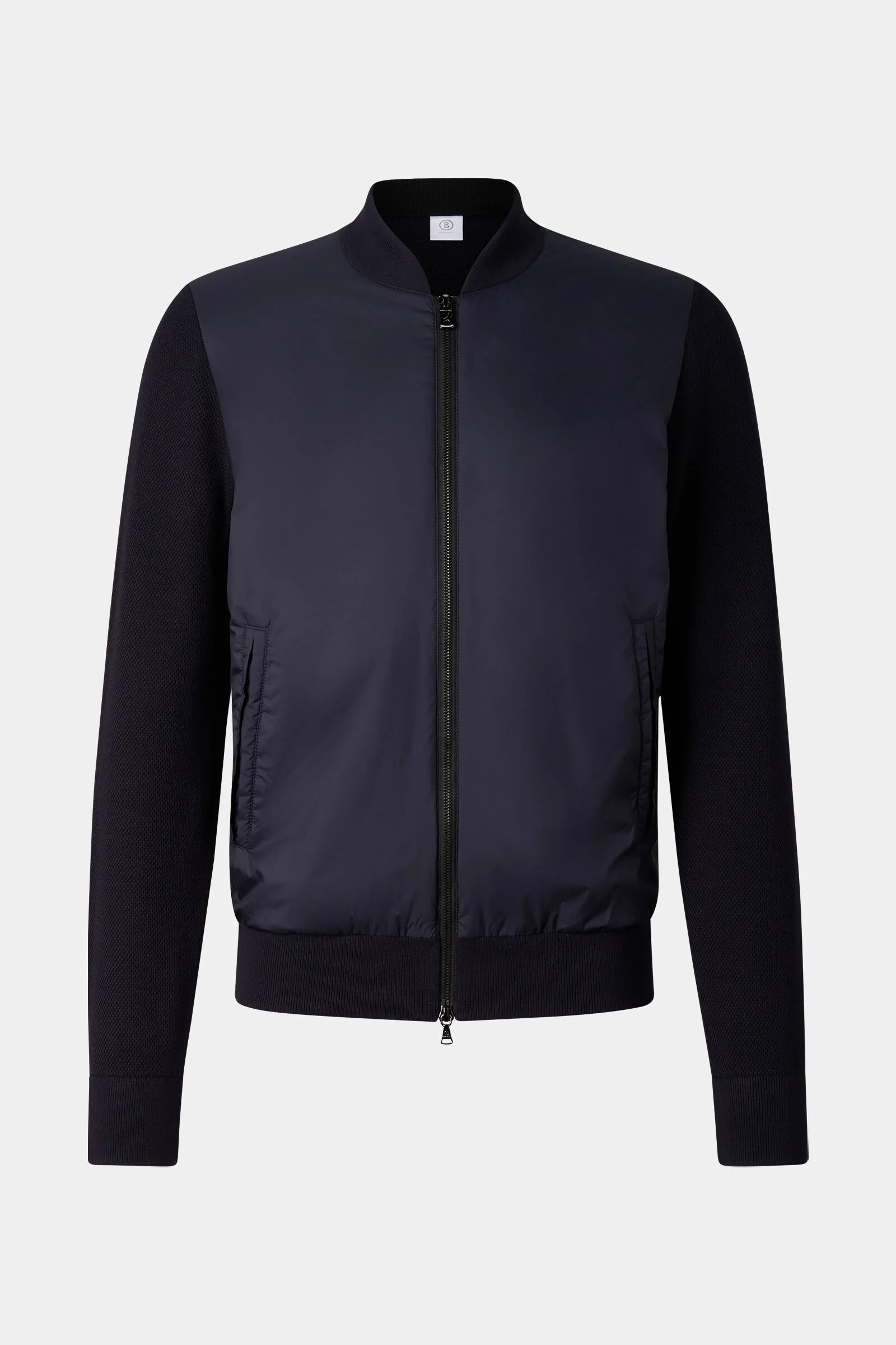 In a hybrid design with a slightly padded nylon front, the Zisco knit jacket is a modern update for your outfit. Details such as the ribbed college collar and matching cuffs accentuate the look, complemented by the two-way zip. Piped pockets add a stylish twist. Style number 262-8833-9622-464