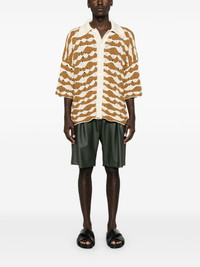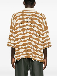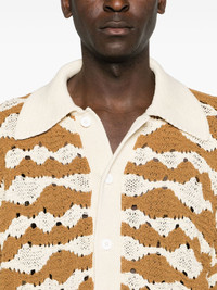 crochet-knit buttoned shirt Highlights - Ecru/cognac brown - Cotton blend - Crochet knit - Wave pattern - Spread collar - Front button fastening - Drop shoulder - Three-quarter length sleeves - Straight hem Made in Italy Composition Cotton 80%, Polyamide 20% SIZE & FIT Model measurements Height 6 ft 2 in(1.87 m) Bust/Chest 36.41 in(92.5 cm) Hips 37 in(94 cm) Waist 29.52 in(75 cm) FittingInformation Designed for an oversized fit, offering additional room throughout Made with a midweight knit, this piece offers some stretch This piece fits true to size – take your usual size