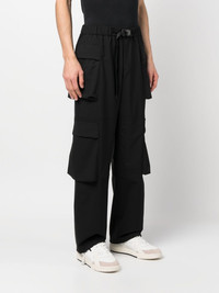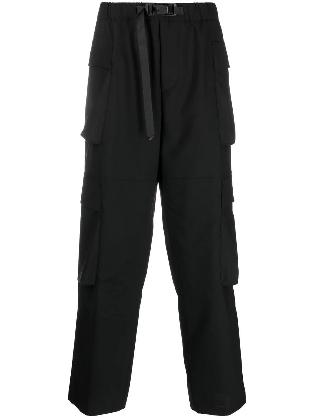 buckle-fastening belted cargo trousers Highlights - Black - Virgin wool blend - Belted waist - Buckle fastening - Elasticated waistband - Wide leg - Multiple cargo pockets - Straight hem Made in Italy Composition Polyester 54%, Virgin Wool 44%, Spandex/Elastane 2% SIZE & FIT Model measurements Height 6 ft 1 in(1.85 m) Bust/Chest 35.82 in(91 cm) Hips 37.79 in(96 cm) Waist 29.13 in(74 cm) FittingInformation Designed with a wide leg, offering a loose and roomy fit The internal drawstring at the hem allows for fitted preferences at the ankle Made from a midweight stretch fabric, this piece offers elasticity and flexibility when worn This piece fits true to size – take your usual size