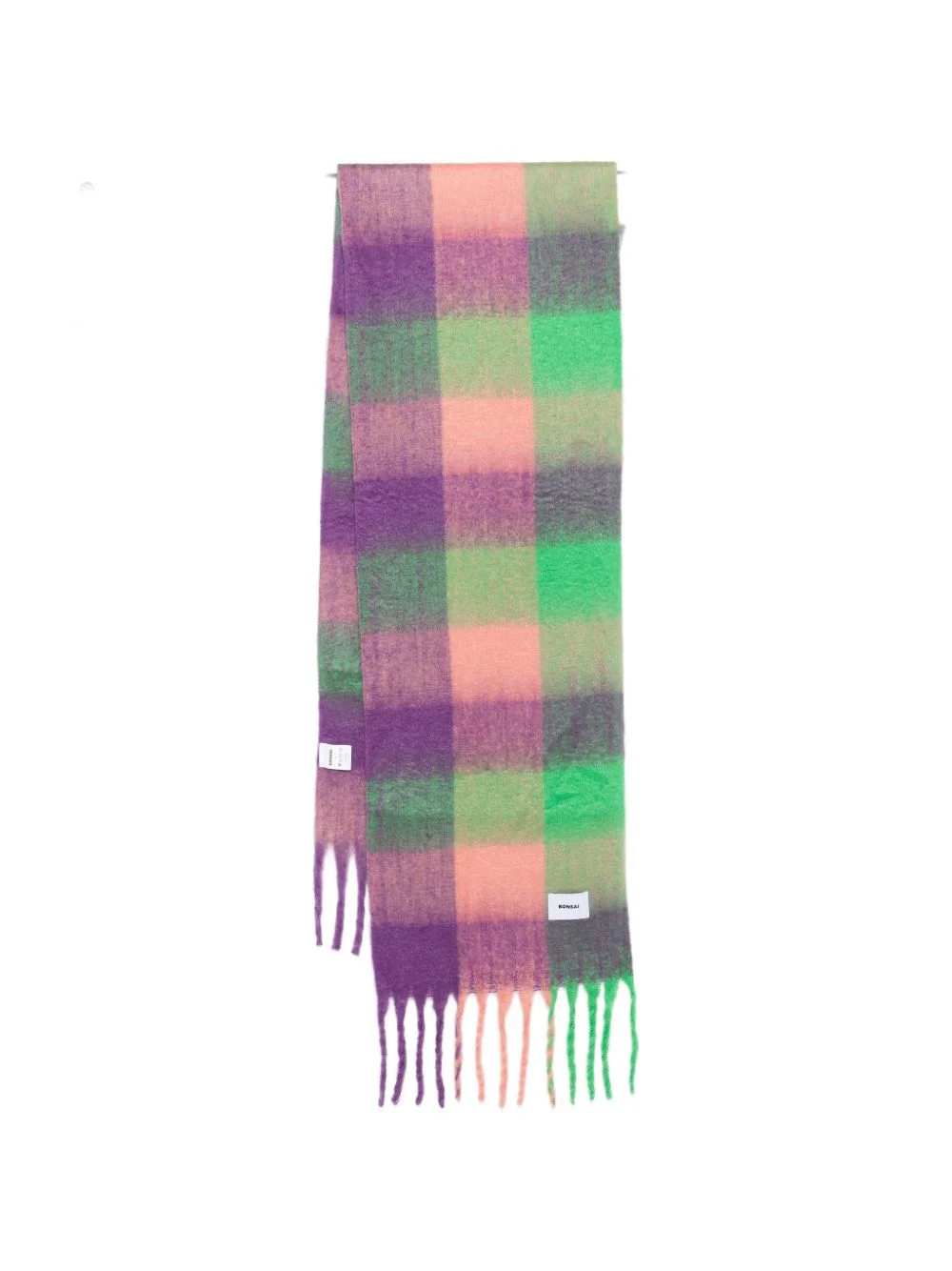 checked scarf Highlights - Green and pink - Check pattern - Fringed edge Imported Composition Polyester 100% SIZE & FIT Measurement LENGTH 92.51 in(235 cm) WIDTH 15.74 in(40 cm) Washing instructions Hand Wash