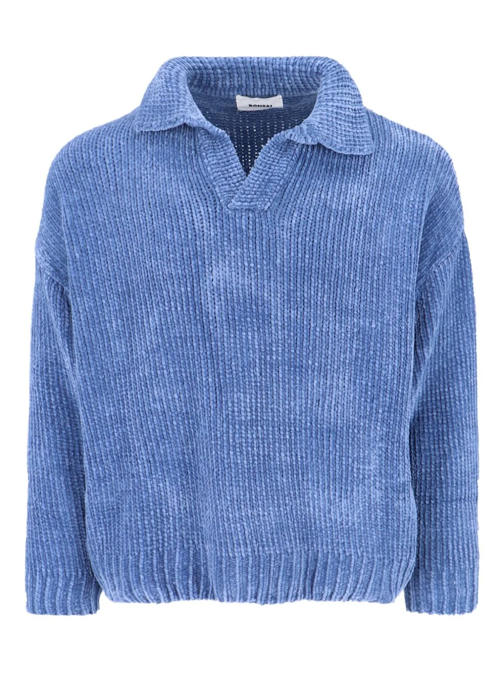 collared polo shirt Highlights - Blue - Ribbed knit - Collared - V-neck - Long sleeves Imported Composition Fabric 100% Washing instructions Read Manufacturer Guidelines