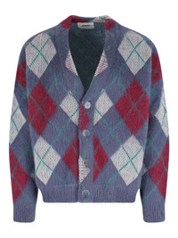 argyle-knit cardigan Highlights - Blue and multicoloured - Argyle pattern - Button fastening - V-neck - Long sleeves - Ribbed hem Imported Composition Fabric 100% Washing instructions Read Manufacturer Guidelines