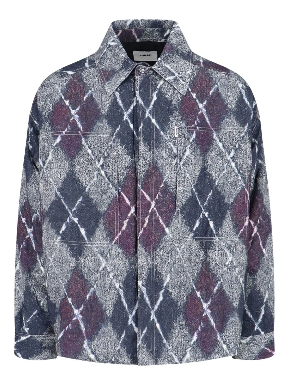 diamond texture shirt jacket Highlights - Grey and multicoloured - Diamond pattern - Point collar - Button fastening - Long sleeves - Chest pockets Imported Composition Fabric 100% Washing instructions Read Manufacturer Guidelines
