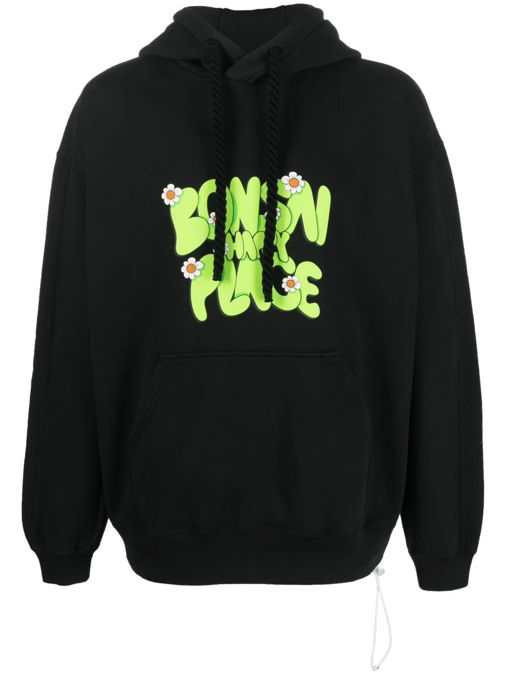 logo-print cotton hoodie jet black cotton logo print to the front drawstring hood long sleeves elasticated cuffs elasticated hem straight hem Made in Italy Composition Cotton 100% SIZE & FIT Model measurements Height 6 ft 1 in(1.85 m) Bust/Chest 35.82 in(91 cm) Hips 37.79 in(96 cm) Waist 29.13 in(74 cm) FittingInformation Designed for an oversized fit, offering additional room throughout Made from a midweight non-stretch fabric, this piece offers minimal elasticity when worn This piece fits true to size – take your usual size