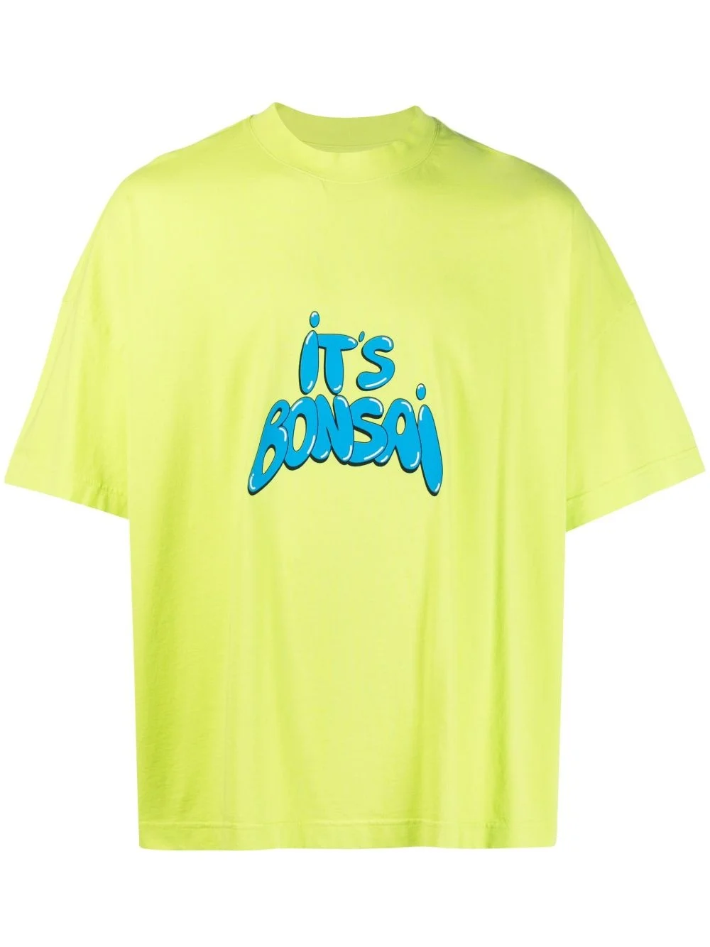 logo-print T-shirt lime green cotton logo print to the front round neck short sleeves straight hem Made in Italy Composition Cotton 100%