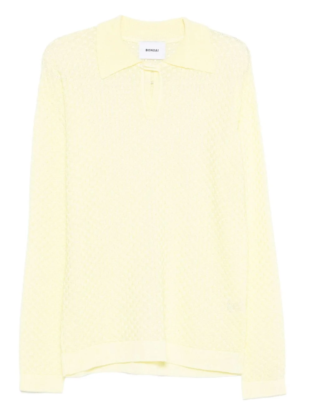 keyhole polo-neck sweater Highlights - Pale yellow - Keyhole neckline - Polo collar - Long sleeves Made in Italy Composition Rayon 88%, Polyamide 12% SIZE & FIT Model measurements Height 6 ft 1 in(1.85 m) Bust/Chest 35.82 in(91 cm) Hips 37.79 in(96 cm) Waist 29.13 in(74 cm) Washing instructions Machine Wash