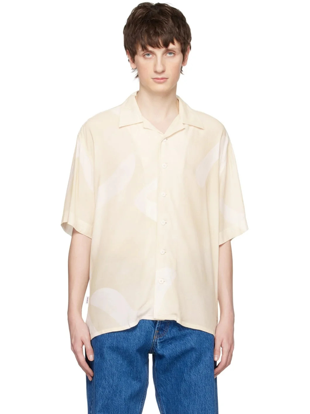 Semi-sheer cotton hopsack shirt. Graphic pattern printed throughout. · Open spread collar · Button closure · Shirttail hem · Textile logo flag at side seam · Logo-engraved white hardware Supplier color: Ivory 100% cotton. Made in Italy 231945M192003