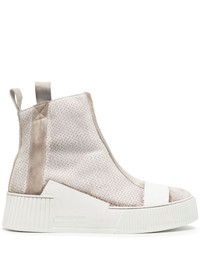 Bamba 5 distressed-effect sneakers Highlights - Light grey - Calf leather - Distressed effect - Panelled design - Tie-dye print - Perforated detailing - Pull-tab at the heel - Round toe - Side zip fastening - Branded leather insole - 50mm platform sole Imported Composition Lining: Calf Leather 100% Outer: Calf Leather 100% Sole: Rubber 100% SIZE & FIT Measurement CIRCUMFERENCE 11.81 in(30 cm) HEEL 1.96 in(5 cm) HEIGHT 4.72 in(12 cm) Sole height 1.37 in(3.5 cm)