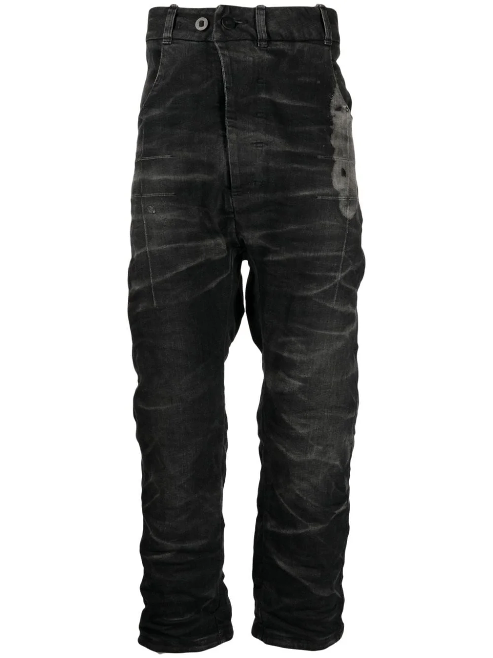 distressed cropped jeans Highlights - Black - Cotton blend - Washed denim - Whiskering effect - Mid-rise - Belt loops - Off-centre front button fastening - Rear buckle fastening - Drop crotch - Two side slash pockets - Rear patch pocket - Cropped leg - Slim cut Imported Composition Cotton 98%, Polyurethane 2% SIZE & FIT Model measurements Height 6 ft 2 in(1.87 m) Bust/Chest 31.49 in(80 cm) Hips 37.79 in(96 cm) Waist 27.95 in(71 cm) FittingInformation Designed for a slim fit, offering a comfortable fit that sits just away from the leg Sturdy and hard-wearing, this denim piece offers no stretch This piece fits true to size – take your usual size Washing instructions Read Manufacturer Guidelines
